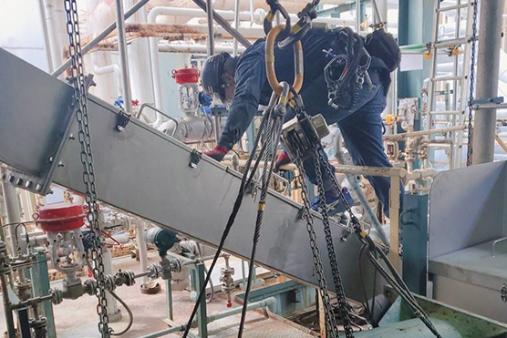 株式会社STILOでは、足場工事や鉄骨工事の他、工場の設備に使われる回転機などのメンテナンスも行っており、未経験の方にはまず、そうした機械整備の手伝いからスタートしていただきます。本格的に鳶の仕事を始めるにはフルハーネスの知識が必要になりますので、入社後に資格を取ってから徐々に高所作業に挑戦していきましょう。